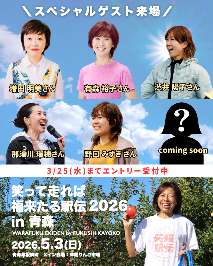 2026年5月3日開催「笑福駅伝2026 in 青森」スペシャルゲスト第3弾として
