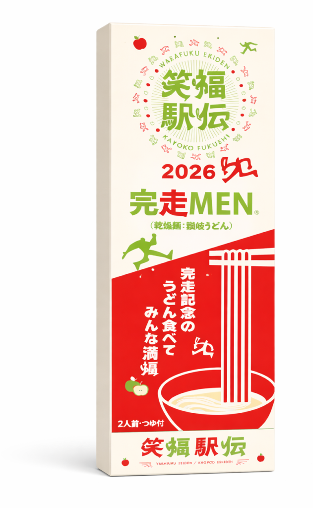 創業1904年の老舗「石丸製麺」が製造する本場讃岐うどんの乾燥麺を、大会オリジナル「笑福駅伝2024完走MEN」としてご提供します。